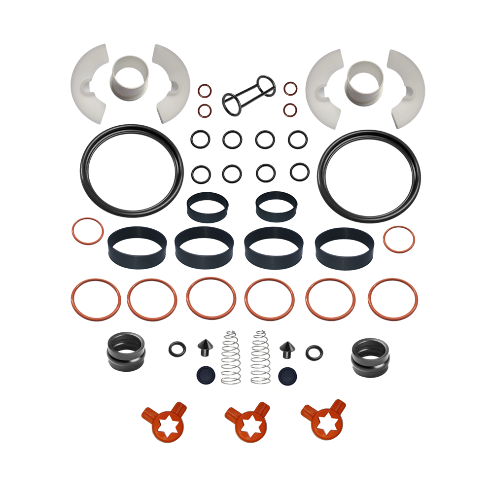 Conjunto de manutenção integral (Full Kit) contendo todos os componentes elastoméricos e de desgaste essenciais para a restauração completa dos cilindros de congelamento, portelos, pistões de extração e o complexo sistema de bombas do modelo Taylor 8756. Este kit garante a renovação da integridade da vedação em todos os pontos críticos da máquina, otimizando o overrun e a segurança sanitária.
